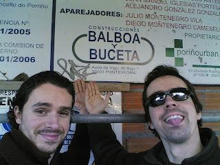 Num passeio matinal pelo Porriño, não deixei de reparar nestes dois construtores, sócios de uma conhecida empresa local. Rapazes simpáticos, fizeram-me reflectir nesta coisa da língua e na raiz comum do galaico-português. Ora se falamos quase a mesma língua, se temos tantos nomes em comum, se há famílias que se dividem pelos dois lados da fronteira, como pode haver alguém que se chame Balboa, como o Rocky? E já agora... qual deles será o tal Balboa?... Que nome esquisito para se ter...